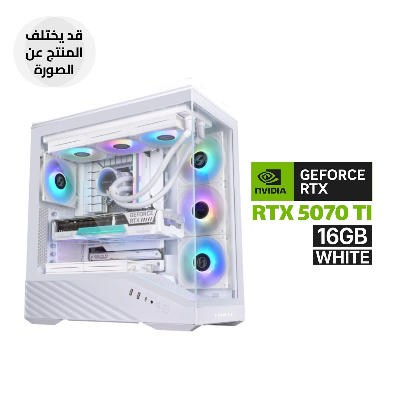 جهاز كمبيوتر للألعاب بمعالج AMD RYZEN 7-9700X، ولوحة أم MSI AMD MPG B850 Edge Ti WIFI DDR5، وذاكرة وصول عشوائي D5 سعة 32 جيجابايت، وقرص SSD من نوع NVMe بسعة 1 تيرابايت، وبطاقة رسومات RTX 5070 Ti بسعة 16 جيجابايت، وشاشة Asus PRIME LC 360 ARGB بيضاء. مزود طاقة 850 وات ذهبي أبيض، علبة كمبيوتر LIAN LI Vector V100 E-ATX بيضاء، نظام تشغيل ويندوز 11 برو (ترخيص)