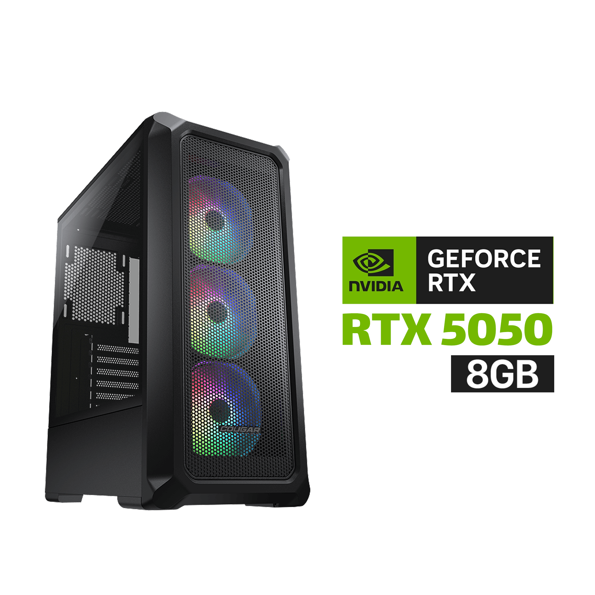 كمبيوتر ألعاب - معالج Intel i5-12400F، لوحة أم H610 D5، ذاكرة وصول عشوائي DDR5 سعة 16 جيجابايت، قرص SSD NVMe سعة 1 تيرابايت، بطاقة رسومات RTX 5050 سعة 8 جيجابايت، مزود طاقة 650 واط، هيكل Cougar Archon 2 Mesh RGB مع 3 مراوح ARGB، محول واي فاي USB، نظام التشغيل Windows 11 Pro (ترخيص)