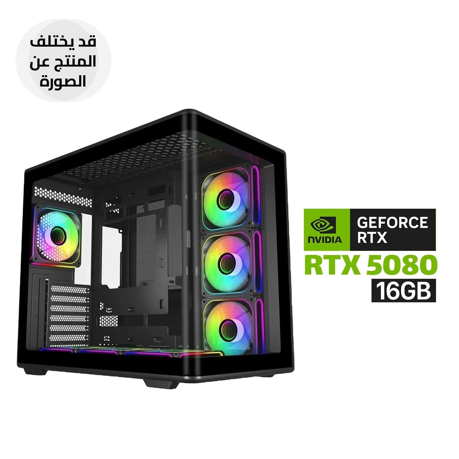 جهاز كمبيوتر للألعاب – معالج RYZEN 7-9800X3D، لوحة أم ASUS TUF X870 WiFi، ذاكرة وصول عشوائي DDR5 (6000) سعة 32 جيجابايت، قرص SSD من نوع NVMe الجيل الرابع سعة 2 تيرابايت، بطاقة رسومات ASUS RTX 5080 Noctua Edition سعة 16 جيجابايت، مزود طاقة Cooler Master بقوة 1000 واط (ذهبي)، مبرد سائل ASUS TUF L360، هيكل Cooler Master Elite 600 مزود بـ 7 مراوح، نظام التشغيل Windows 11 Pro