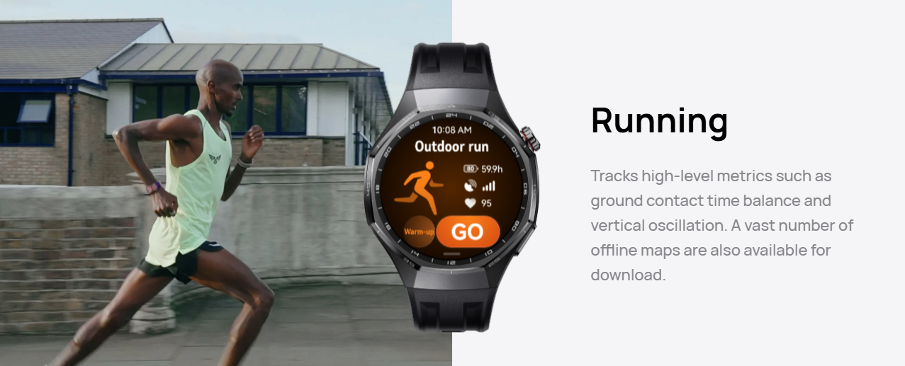 للعدّائين، تقيس الساعة اتجاهات الارتفاع، والسرعة، ومعدل ضربات القلب، وسرعة تصحيح المنحدر للتكيف مع مختلف التضاريس. كما تدعم تقدير المسافات إلى نقاط المسار، وتوفر خرائط غير متصلة بالإنترنت لإبقاء المستخدمين على المسار الصحيح خلال الرحلات الاستكشافية الطويلة. مع ما يصل إلى 40 ساعة من القدرة على التحمل في وضع الجري على الطرق الوعرة، تُعد ساعة GT 6 Pro مثالية لجلسات الجري الطويلة جدًا.