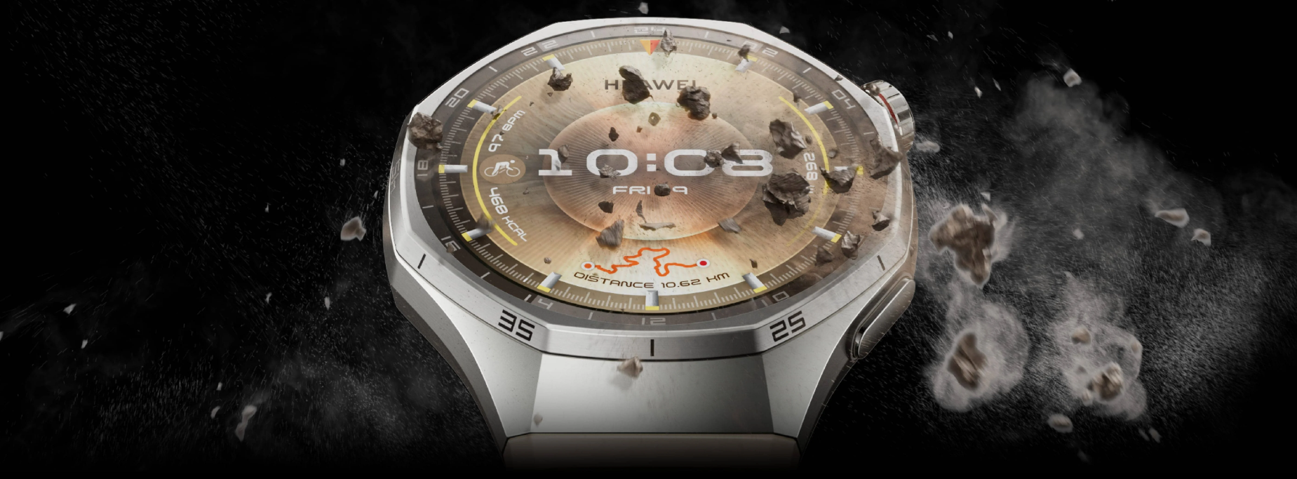 صُنعت ساعة هواوي ووتش جي تي 6 برو بمزيج فاخر من زجاج الياقوت وسبائك التيتانيوم المستخدمة في صناعة الطائرات، لتجمع بين الأناقة والقوة وخفة الوزن. يتميز إطارها بتصميم عمودي فريد مع حراشف على حواف مائلة، مما يُضفي عليها طابعًا هندسيًا متعدد الطبقات يُعزز جاذبيتها الجريئة. مع حماية ثلاثية، تشمل طلاءً معدنيًا صلبًا، وطلاءً للمكونات، ومقاومةً قويةً للماء، تضمن الساعة مقاومةً للخدش والتآكل والمتانة، مما يجعلها مثاليةً لأنماط الحياة المغامرة. وهي حاصلة على تصنيف IP69 و5 ATM لمقاومة الماء.