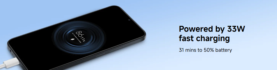 يدعم الجهاز الشحن التوربيني بقوة 33 واط، مما يسمح له بشحن 50% من البطارية في 31 دقيقة فقط. سرعة الشحن إلى 80% أسرع بكثير مقارنةً بالطراز السابق. ويتضمن ميزات شحن ذكية مثل الشحن السريع، وتقنية Battery Health 3.0، وطبقات حماية متعددة. كما يدعم الهاتف الشحن العكسي السلكي بقوة تصل إلى 10 واط، مما يجعله بمثابة بنك طاقة للأجهزة الأخرى.