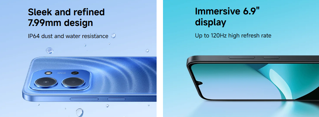 يُبرز تصميم هاتف Redmi 15C الأناقة والبساطة. يتميز بألوان طبيعية وجماليات خالدة تنسجم بسلاسة مع الحياة اليومية. يُضفي تصميم الكاميرا المُصمم على شكل فوهة عائمة وحوافه الرباعية المنحنية على الهاتف مظهرًا عصريًا وفخمًا. على الرغم من بطاريته الكبيرة، لا يتجاوز سُمك الجهاز 7.99 مم، مما يجعله مريحًا للإمساك به لفترات طويلة.