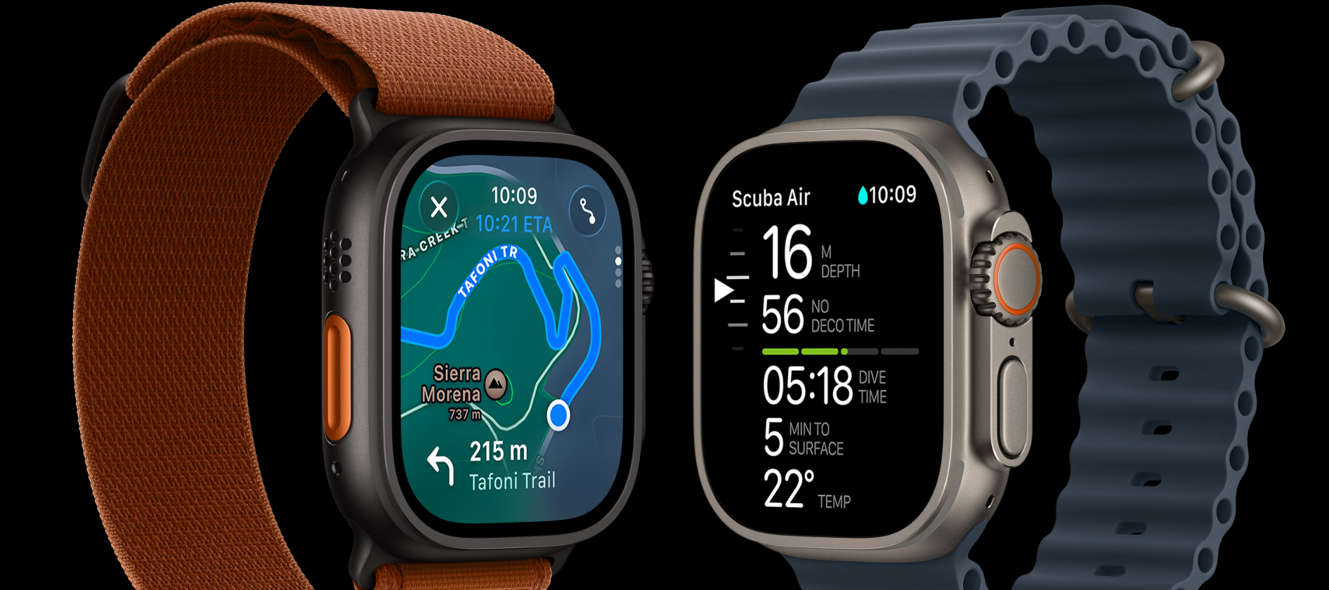 Designed for exploration, Ultra 3 includes powerful tools like Backtrack for retracing your steps and creating waypoints on trails or campsites. Custom Routes allow you to plan one-way, loop, or out-and-back hikes, complete with turn-by-turn navigation on your wrist. Offline maps synced from your iPhone ensure guidance even off the grid. For divers, the Oceanic+ app transforms the watch into a full dive computer with safety algorithms, depth monitoring, decompression data, and safety alerts. The Tides app provides detailed tidal forecasts, ideal for water sports and coastal activities.