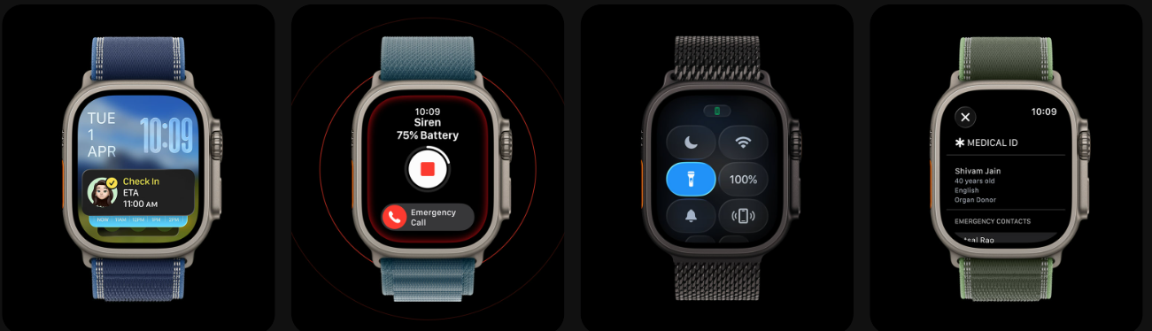 Safety is central to Ultra 3, with features like Emergency SOS, Fall Detection, and Crash Detection automatically connecting you with emergency services and sharing your location. The built-in siren can be heard up to 180 metres away to attract help, while Check In lets you share arrival alerts with friends or family. A powerful flashlight is also integrated, customisable via the Action button. Medical ID ensures first responders have immediate access to critical health information in emergencies.
