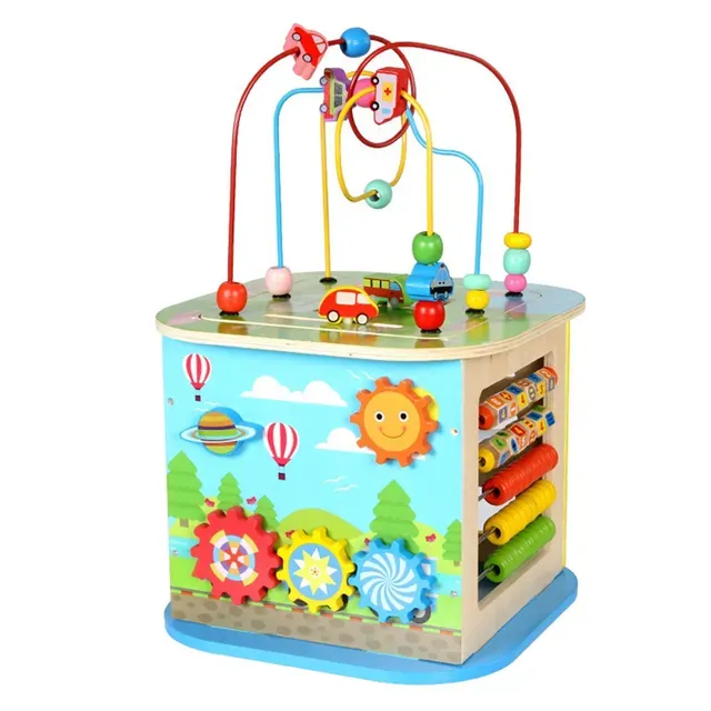This colorful activity cube features six attractive sides and is designed to entertain and educate young children. It helps improve fine motor skills, hand-eye coordination, and introduces them to basic geometric shapes. It's a great educational toy for early development.